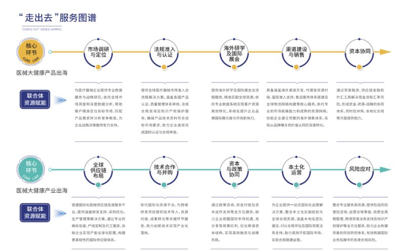 “走出去”服务图谱为长三角医疗器械企业出海,规划了清晰的出海路径图。