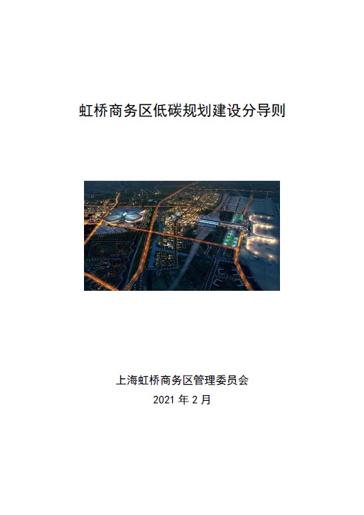 为了全面贯彻落实《长江三角洲区域一体化发展规划纲要》,将虹桥商务区建设打造成为世界一流的绿色低碳发展商务区,依据《关于加快虹桥商务区建设打造国际开放枢纽的实施方案》、《虹桥商务区规划建设导则(试行)》和相关规划建设管理规范、技术规程等,虹桥商务区管委会组织编写了《虹桥商务区低碳规划建设分导则》。