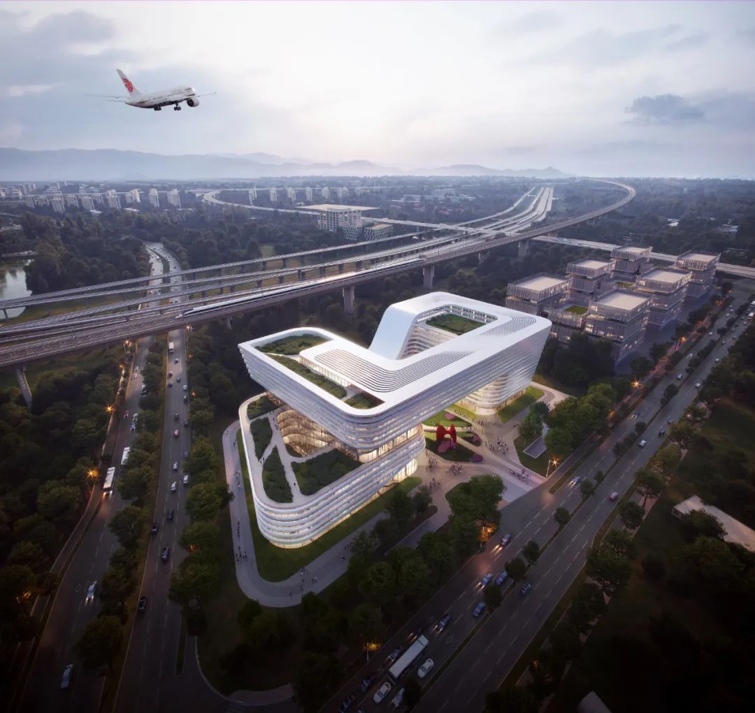 “三中心”项目建筑以“超能云环”为设计意向,以整体连贯形态融合覆盖市域铁路调度指挥、运营办公、技能培训多重功能,营造“超能”概念。在环形建筑中枢开展海量数据传输处理,打造“云环”意向,高品质集中体现虹桥国际中央商务区建筑风貌。项目建成后,将对提高上海市域铁路网络运营管理水平,保障上海市域铁路网络运营调度和职工技能培训等发挥重要作用。