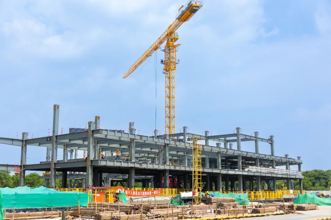 近阶段项目将全力投入上部钢结构施工工作,预计8月下旬完成连廊的整体提升工作,力争为市域铁路机场联络线站后设备尽早接入创造有利条件。