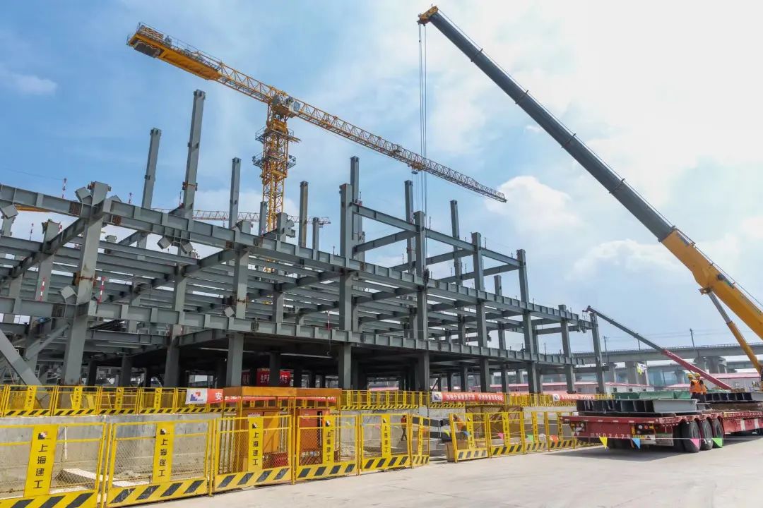 位于虹桥国际中央商务区内的上海市域铁路调度、运营和技能培训基地工程(以下简称“三中心”)项目自去年7月6日开工以来,先后完成了桩基、围护结构、地下室主体结构施工作业,目前已进入上部结构施工阶段,正在进行上部两栋主楼4层和5层钢结构吊装与焊接工作。详见↓