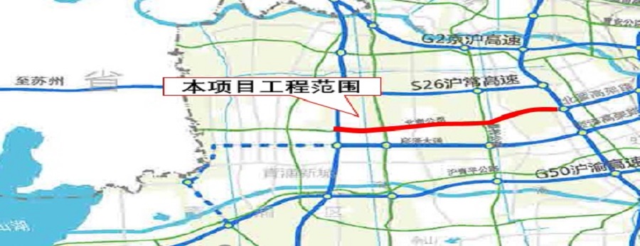 本工程西起外青松公路,东至华徐公路,改建道路长13.2公里,设计速度60公里/小时,建设规模为双向8车道。