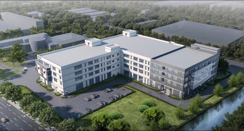 在翔江公路的项目现场,“L”型厂房的外立面已完整呈现,内部道路和绿化工程施工正在紧张进行。