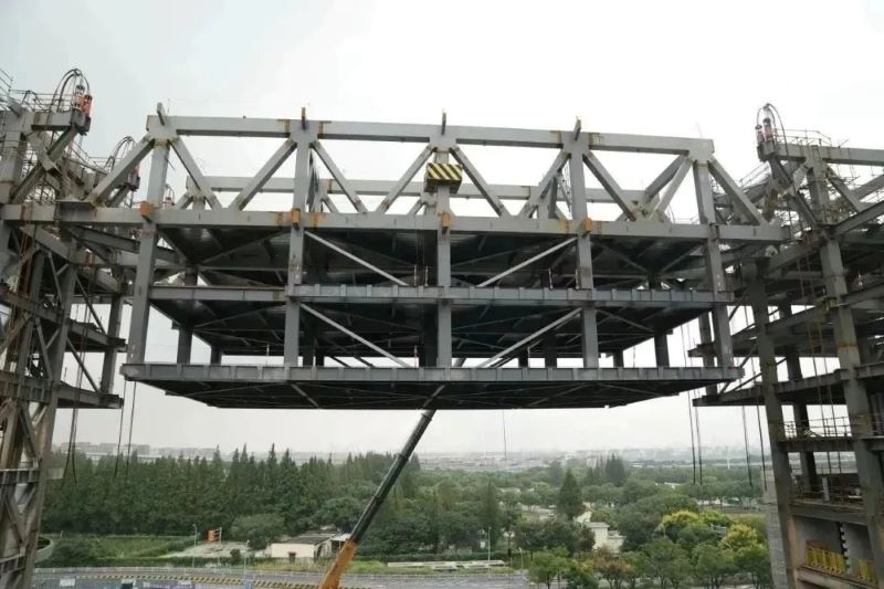 近日从上海申铁获悉,项目经过五个月的上部结构安装施工和一个月的连廊地面拼装作业后,三中心项目空中连廊提升挂装工作顺利完成,标志着这颗市域铁路的“超级大脑”进入了主体结构施工的关键收官阶段。