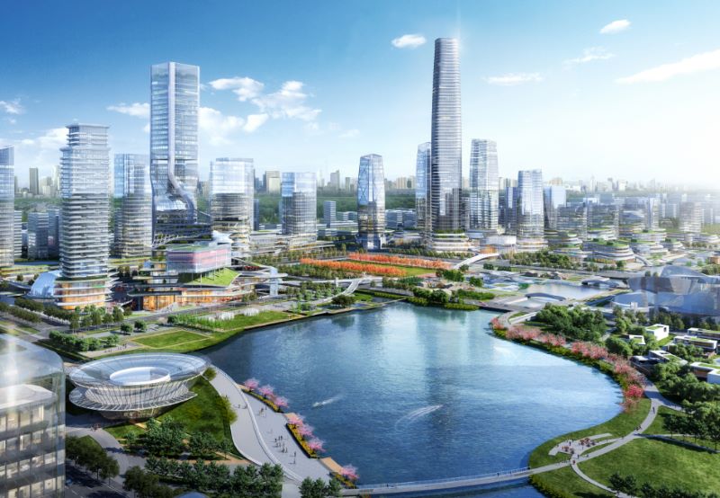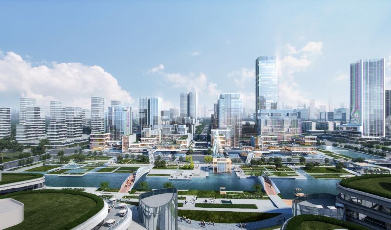 前湾公园位于虹桥国际中央商务区的前湾片区内,是区域生态功能的核心空间载体。它对外连接吴淞江环城生态廊道,深度融入上海“一江一河”大生态空间格局,是上海西翼重要的生态建设地标;对内链接前湾10平方公里内水绿网络,与前湾中央活动区无界融合,将打造成为长三角生态绿色会客厅和世界级滨水中央公园。