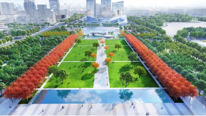 前湾公园是虹桥国际开放枢纽中央商务区“十四五”规划建设期间最重要的一处生态地标,去年11月项目获得施工许可后,南虹桥集团作为公园实施主体,全力协调推进动迁腾地、绿化管线搬迁、场地土方平整等多项前期工作,今年7月,公园的一期建设进入全面的快速推进阶段,目前公园一期的“前湾广场”已初具规模,公园框架已初见端倪。