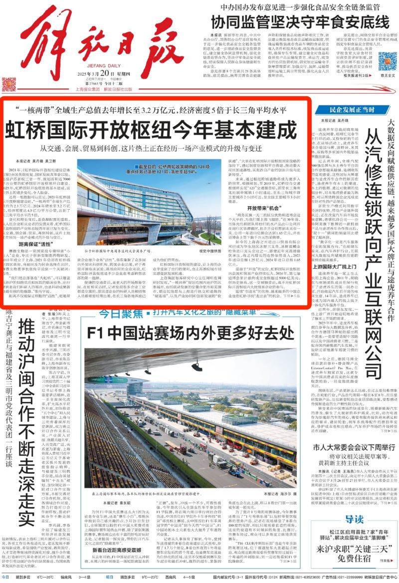 资源的集聚,让企业、人才能够落地生根,企业、人才又将为这片土地带来更多的产业奇迹。周明介绍,截至目前,虹桥两轮政策明确的128项重点任务已落地121项,落地率超94%。深化服务业领域扩大开放、促进金融与贸易深度融合等一批政策措施加快释放政策红利,长三角民营企业总部服务中心、虹桥国际会展产业园等一批功能平台持续赋能提升,沪苏湖高铁、上海市域机场线等一批重大项目助推“大虹桥”打造国内国际双循环的战略链接。