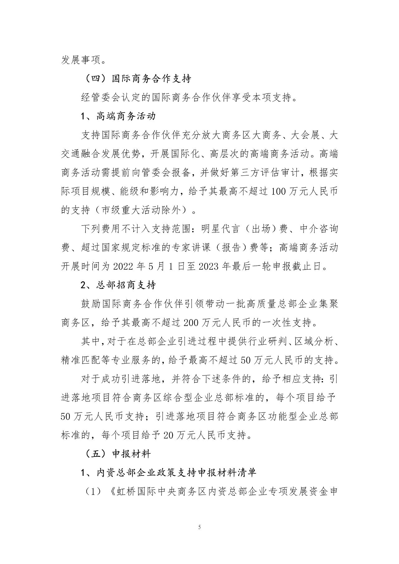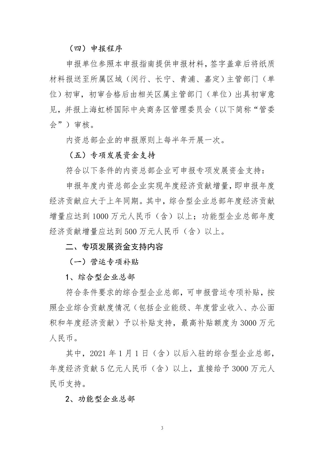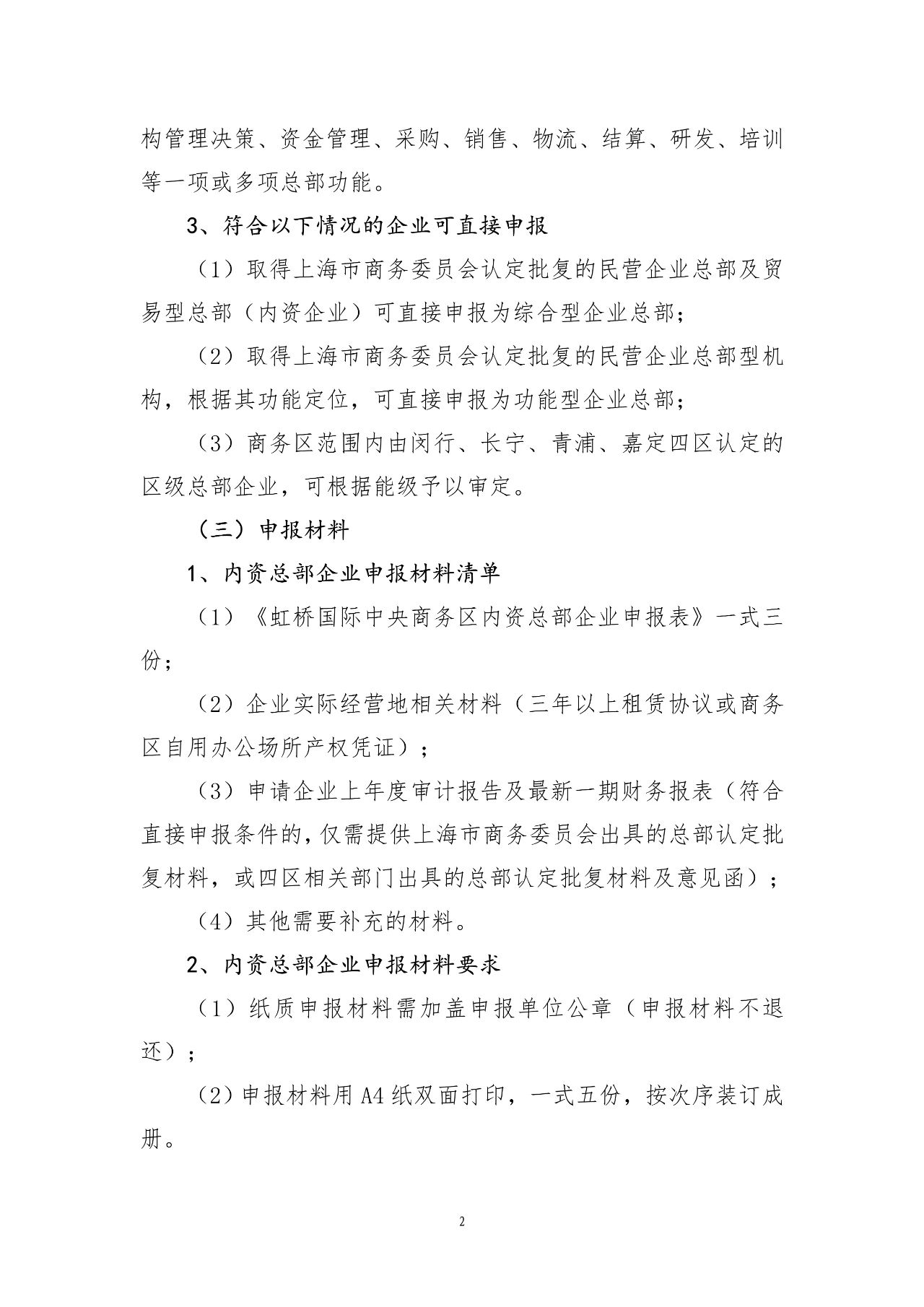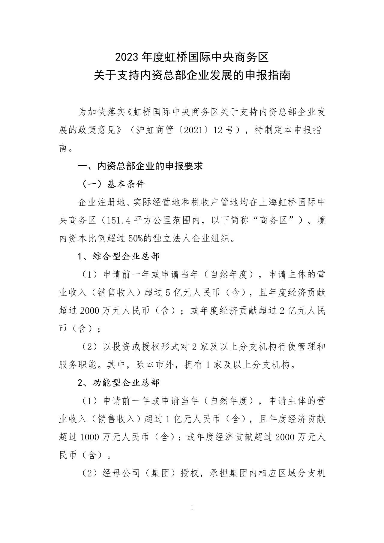 2023年度虹桥国际中央商务区关于支持内资总部企业发展的申报指南