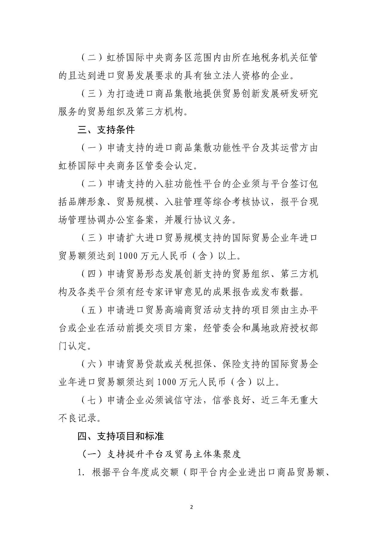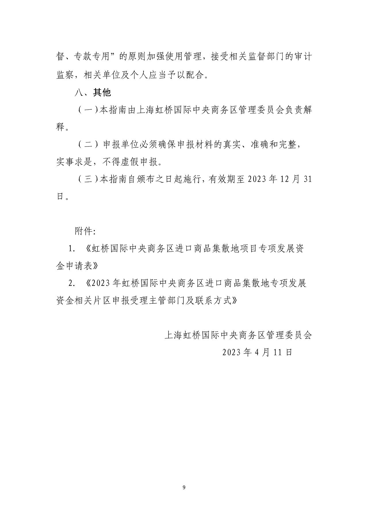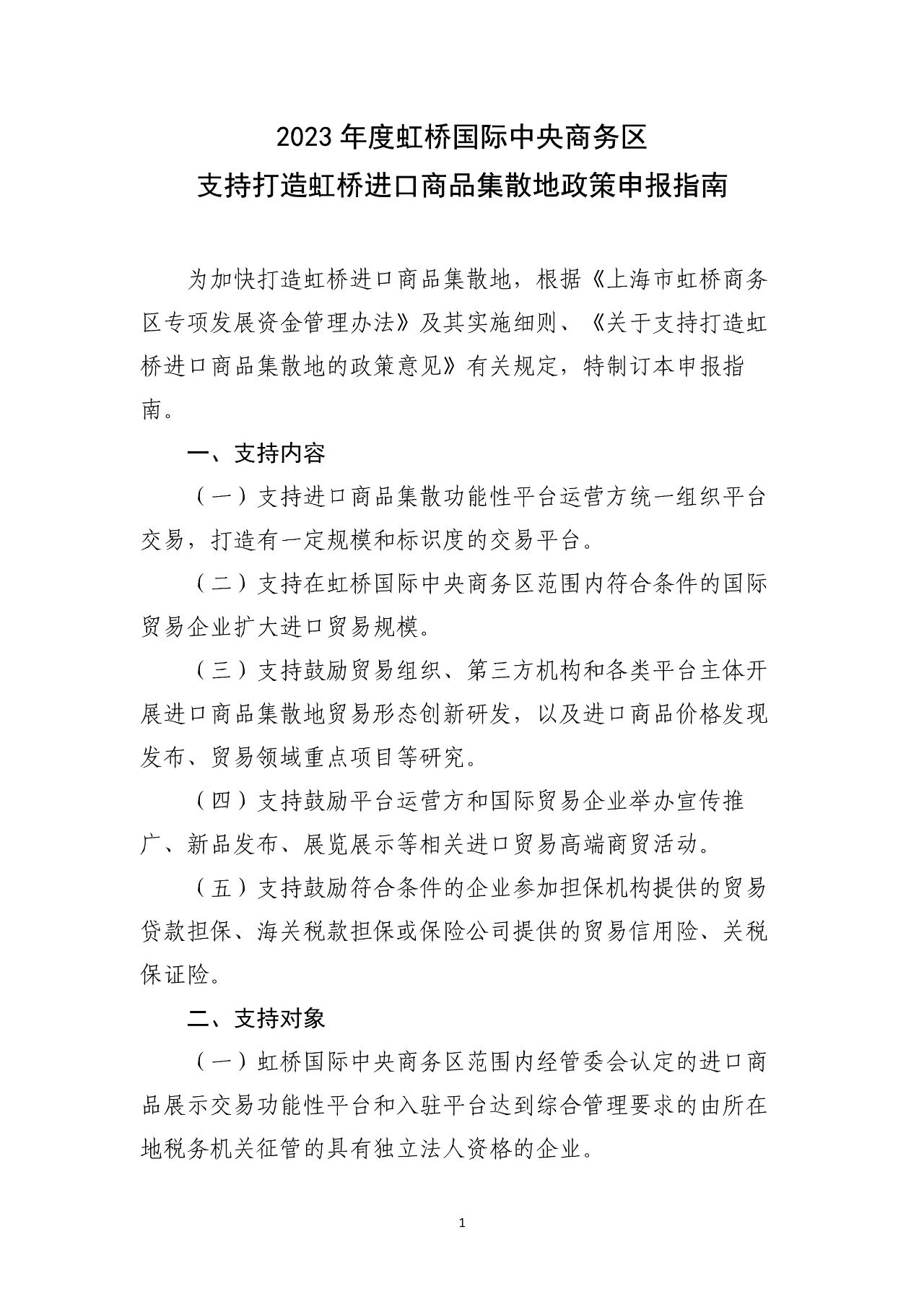 2023年度虹桥国际中央商务区支持打造虹桥进口商品集散地政策申报指南