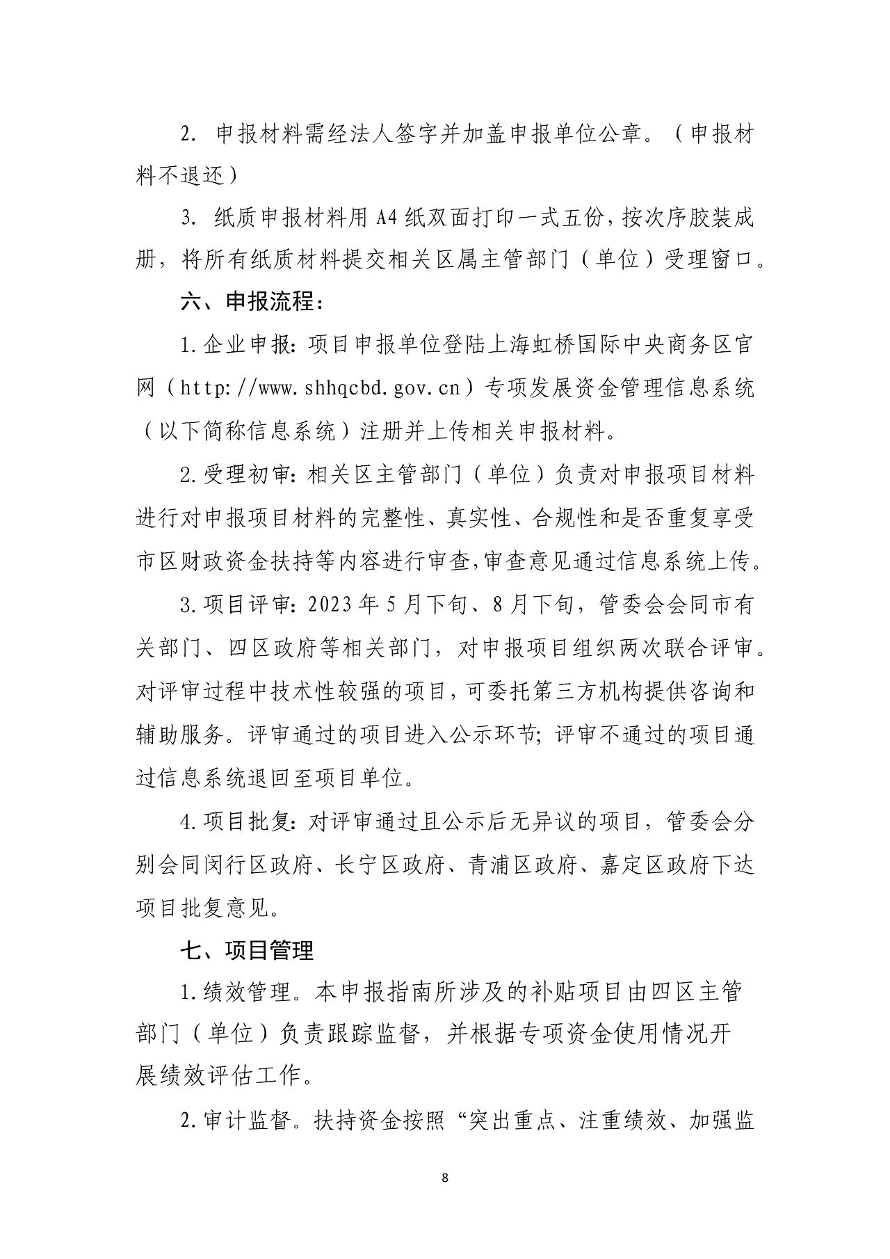 2023年度虹桥国际中央商务区支持功能性平台发展政策申报指南