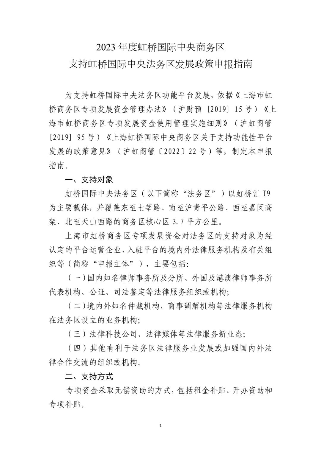 2023年度虹桥国际中央商务区支持虹桥国际中央法务区发展政策申报指南