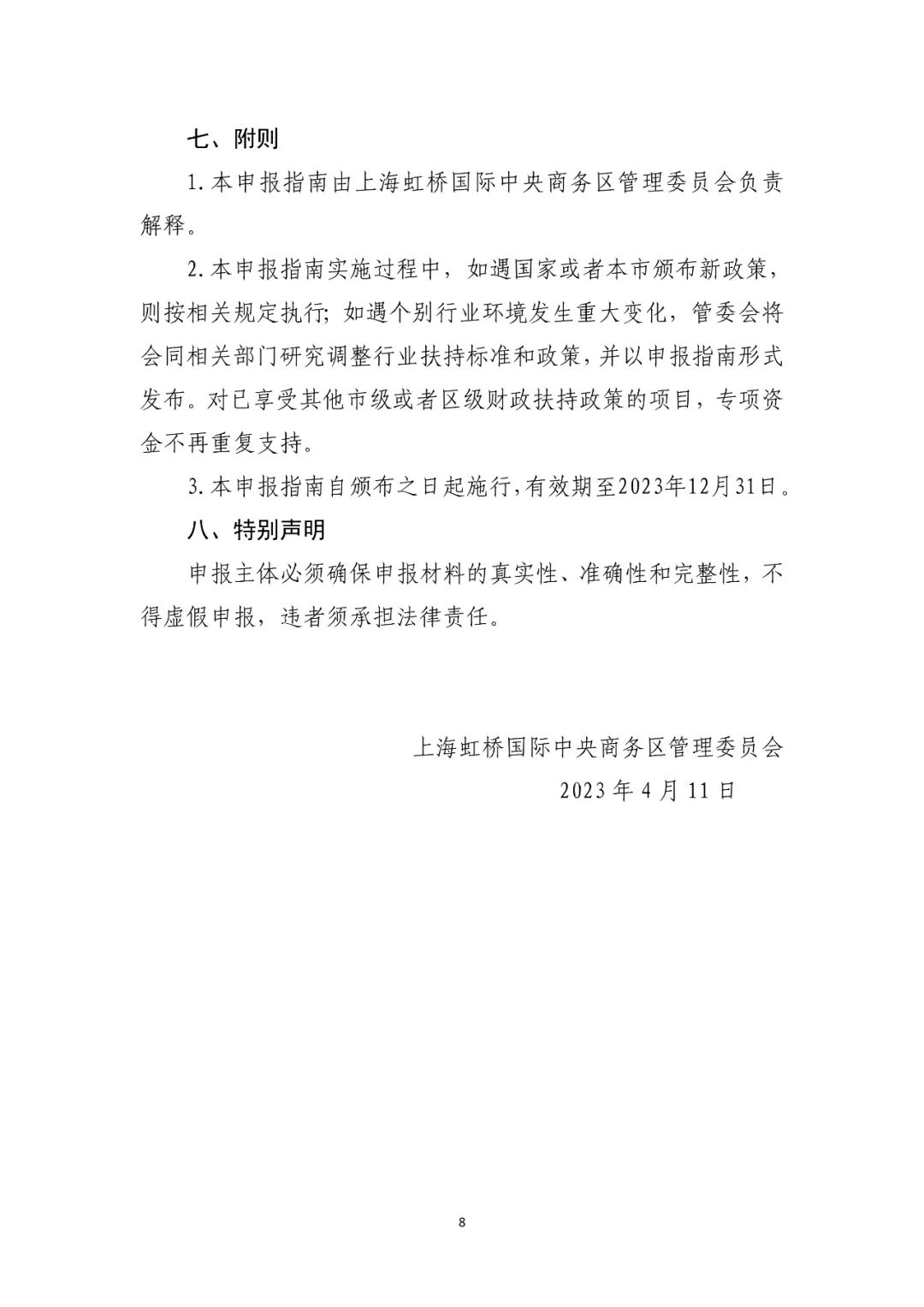 2023年度虹桥国际中央商务区支持现代服务业发展政策申报指南