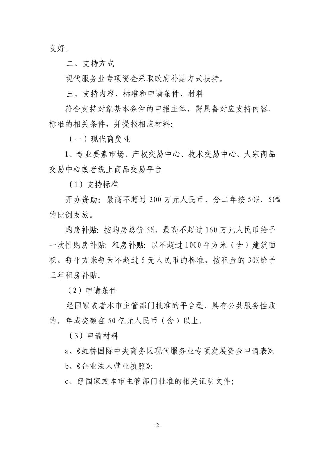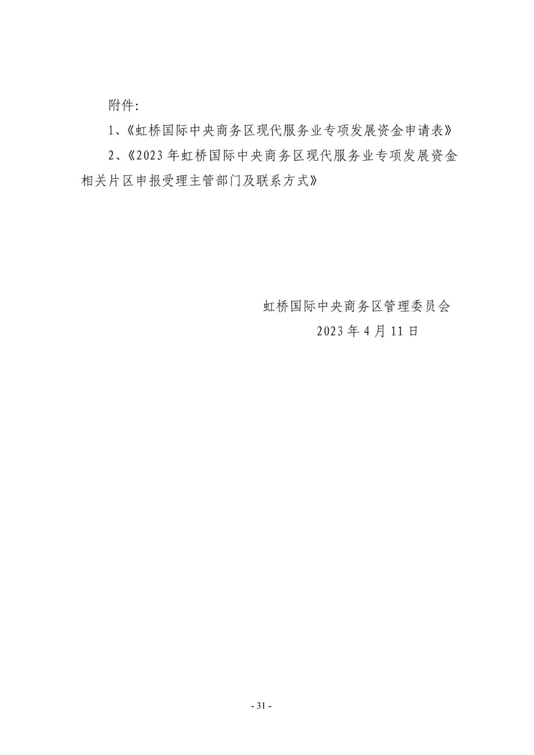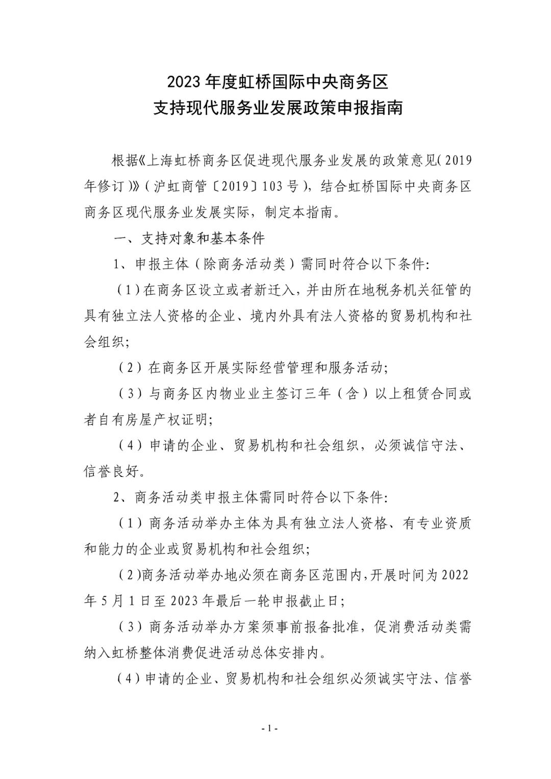 2023年度虹桥国际中央商务区支持现代服务业发展政策申报指南