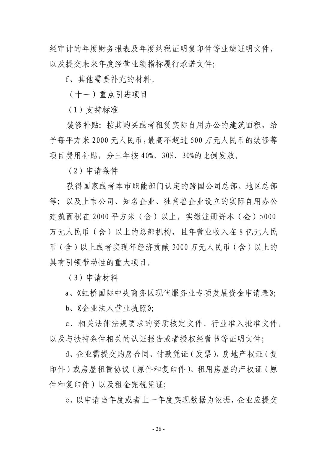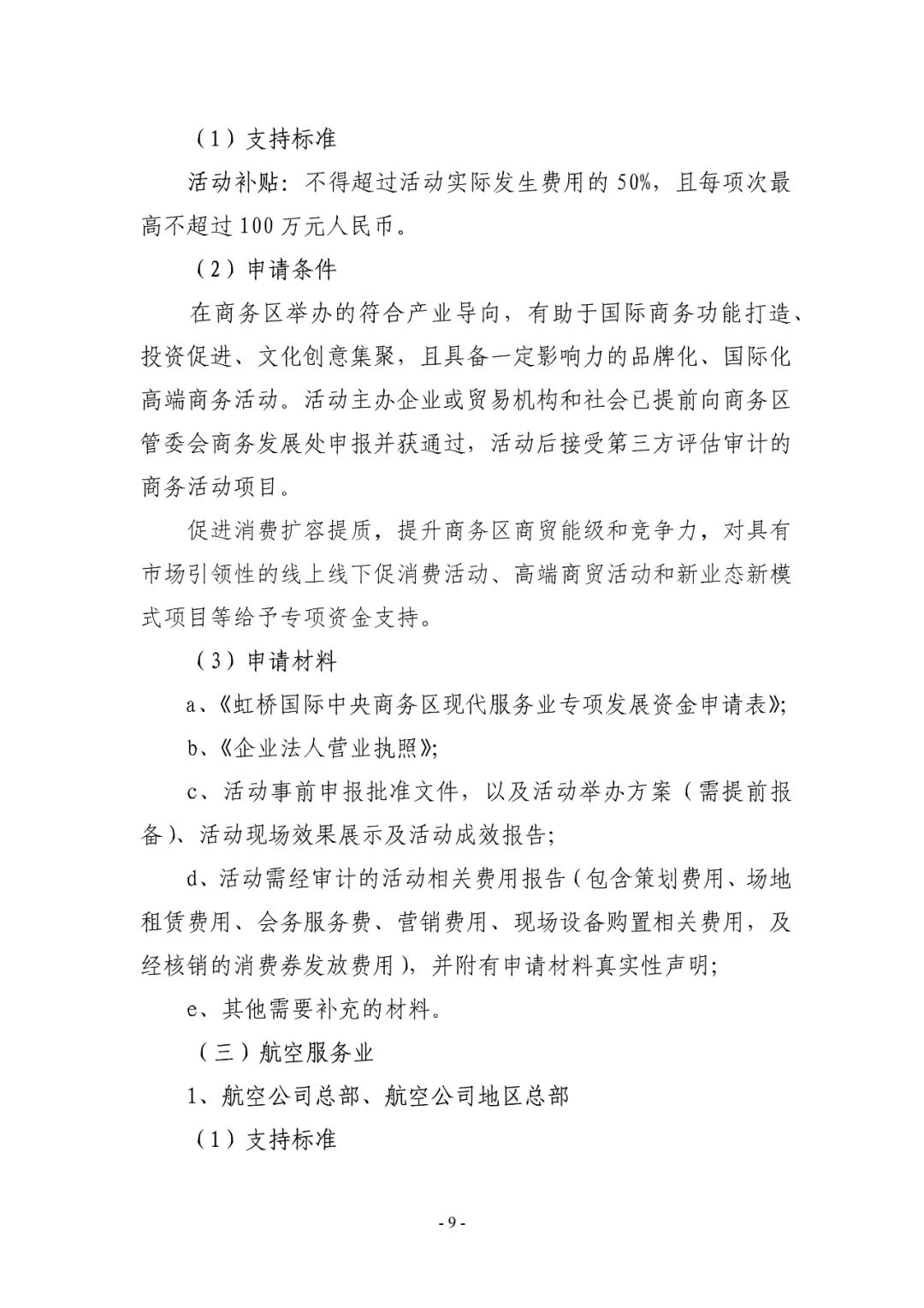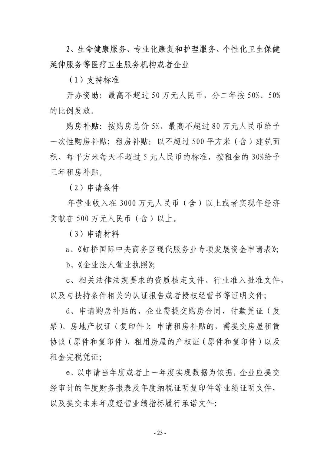 2023年度虹桥国际中央商务区支持现代服务业发展政策申报指南