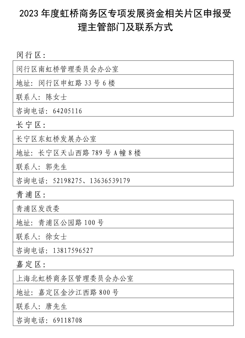 同时,商务区管委会将于近期组织2023年度专项资金项目申报培训会,敬请关注“上海虹桥”公众号获取最新讯息。