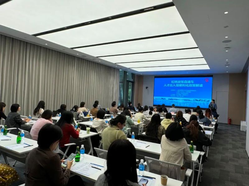 为深入推进虹桥国际中央商务区高水平人才高地建设,更好地提升人才服务国际化、便利化水平,在第七届中国国际进口博览会即将开幕之际,虹桥国际中央商务区管委会联合上海市公安局出入境管理局、虹桥出入境边防检查站、中智上海公司举办虹桥政策直通车之人才出入境便利化政策解读,进一步提升商务区企业和参展商的出入境便利度,确保能够顺利、便捷地参与这一国际盛会。会议吸引了50多家知名企业代表参加。
